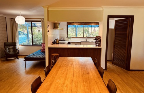 Relax and enjoy this comfortable, clean, light and airy beach house one street from the pristine blue waters of Eagle Bay beach. The home features two bedrooms with queen-sized beds and another bedroom with two single bunk beds. Fall asleep to the sounds of the ocean.