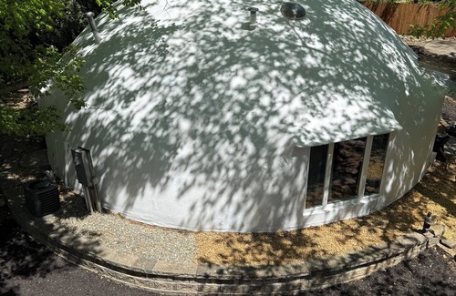 In 2024, new ownership brought fresh energy to the property. By April 2025, the Dome was transformed into a magical haven of art and design. With meticulous attention to detail, custom textures, hand-selected finishes, and permanently embedded artwork, every corner of the Dome now tells its own story. What began as a functional short-term rental has blossomed into an inspiring oasis—an enchanting space that captivates the senses and leaves every guest with lasting memories.