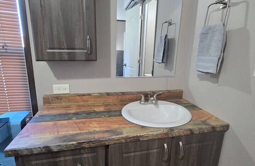 This hotel style space is perfect for your next fishing trip! Featuring a queen bed and bathroom with a shower. The kitchenette has mini fridge, microwave and coffee bar for some quick eating for yourself or cook on the park style charcoal grill after a great day on the lake! Located near bird island and the 154 bridge. Waterfront, boat ramp and outlets for boat charging *their is also an identical space across the way for your buddy