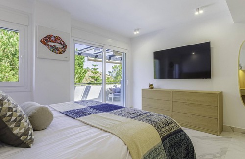 Here you will find the perfect place to enjoy a well deserved holiday. The property has been completely refurbished recently and all the furniture is brand new with excellent qualities. There are four magnificent bedrooms at your disposal, two of which have their own bathroom. Two of the upstairs bedrooms have access to a terrace with beautiful views. On the ground floor there is an open plan kitchen leading to the living and dining room with access to the garden. This property is located in an urbanization with swimming pool and gardens in the middle of the Santa Clara Golf Course. It is the ideal place for golf and beach lovers as it is only 5 minutes drive from the best beaches of Marbella, where you can find the famous restaurant and Beach Club Trocadero. Property managed by a professional. Unless stated, services such as cleaning, bed linen, towels etc. are not included in the price of this rental. If pets are allowed (information in the advertisement), charges may be applicable. Only equipment mentioned in this advertisement are present. Equipment not mentioned are not considered to be present.