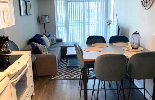 Cozy Unit with the Balcony in the Heart of Downtown Entertainment district on a High Floor. The apartment 650 sq. feet includes the master bedroom with a queen bed and another bedroom in den with a single bed. There is the a sofa bed in the living room . Easy access to TTC, Union Station, Lake Shore and Gardiner Express Way. Steps to CN Tower, Rogers Center, Union Metro Station, Financial District, Bars, Restaurants, Sobeys Grocery Store, Bishop airport, etc