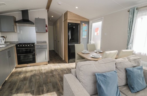 Gold Caravan (203), a single-storey lovely static caravan, consists of a kitchen with fridge/freezer, gas oven and hob, microwave, kettle, and toaster, a dining room with dining seating, and a sitting room with Smart TV. The bedrooms consist of a double and two twins. There is a shower room with walk-in shower, basin, and WC. WIFI is available at an additional cost. Fuel, power, bed linen, and towels are included in the rent. Outside, there is an enclosed front decking with furniture and off-road parking for one car. Sorry, no pets and no smoking. Your stay at Gold Caravan (203) is sure to be a memorable one. Note: there is a Good Housekeeping Bond of 350GBP