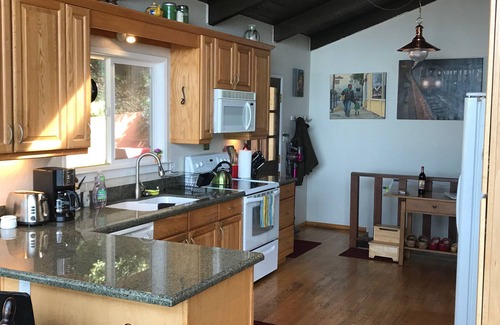 You can reach San Francisco in 20-30 minutes by car or public transportation, and the village of Montclair, with its cafes, shops and a Sunday farmers' market, is only a 2-minute drive or a 20-minute (hilly) walk from our house. Berkeley, with its great university and wonderful restaurants, is only a 10-minute drive. Our house is very popular for hosting families of UC Berkeley students for events such as graduation.