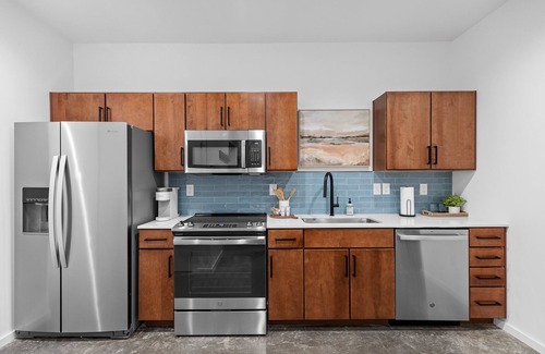 Inside is a modern yet deliciously comfy space to call home during your stay in Chattanooga. Enjoy the city lights on the turfed rooftop terrace with stunning views of the surrounding mountains and the skyline including the Choo Choo. ***Our home is dog friendly just like our city! *Please note that the primary bedroom takes up the full second floor and there is not a door. Please see photos for visual.
