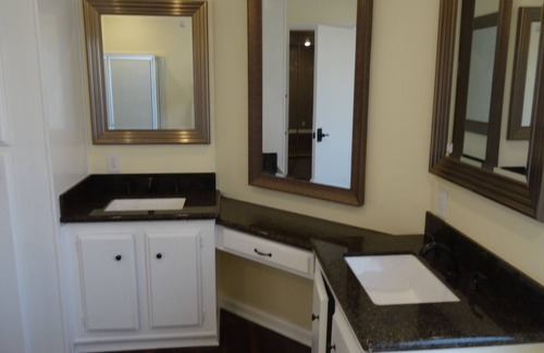 This is a rehabbed, beautiful 2 Bd/2 Ba plus enclosed patio manufactured home! Feels like a brand new house. The house is open and bright and lots of room for entertaining. There are dark laminate floors and recessed lights throughout house . Granite counter tops in kitchen, bathrooms, and desk area. The enclosed patio, which was redone as well, and can be used as a 3rd bedroom or for entertaining. Patio exits to a private Jacuzzi with it's own enclosed and private fence. There is a private and fenced back yard for entertaining. There's a brand new AC, that works well on those hot days! Heater also works great for those cold nights! There is a king bed in master bedroom with it's own master bathroom and a queen bed in 2nd bedroom. There is also a futon in the family room I have .Cable tv (basic cable) and internet(wifi) throughout the house. I have a older golf cart in shed for golfers wishing to use it! The clubhouse offers, a restaurant, pools and large hot tubs. Golf course is available as well.