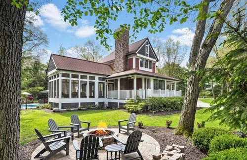 This elegant 6-bedroom, 5.5-bath retreat sits on a private acre in Grand Beach, MI, offering luxury and convenience. Enjoy a heated pool, hot tub, fire pit, game room, and outdoor grill island—everything you need for a perfect vacation. Walk to the beach, golf, playgrounds, and sports courts, or grab a treat at the clubhouse. A true all-in-one getaway!
