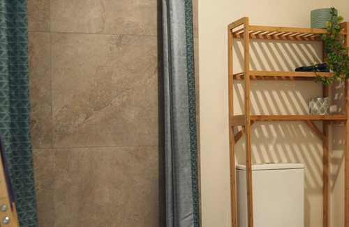 Our one out of two new 30qm, motel like studio has a choice of having a super king sized bed or two single beds. It has a modern interior with high ceilings, coffee and tea making facilities and a small kitchenette with microwave oven.( no cooking facilities as such)