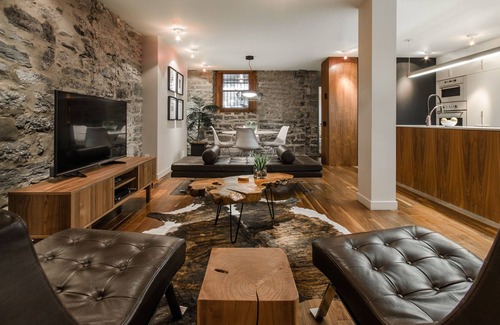 The building itself is gorgeous and built in 1892, ideal for the ultimate Montreal experience! The stunning newly renovated interior details include exposed stone and brick walls and gorgeous hardwood floors, mixed with modern details, it leaves you feeling as if you staying in a stylish boutique hotel.There is a spacious living room with contemporary furniture and a brand new 50" HDTV, with Apple T.V. and bluetooth Beats Pill speaker. The dining area is furnished with an exquisite marble top Tulip table with contemporary lighting and seating for 4.