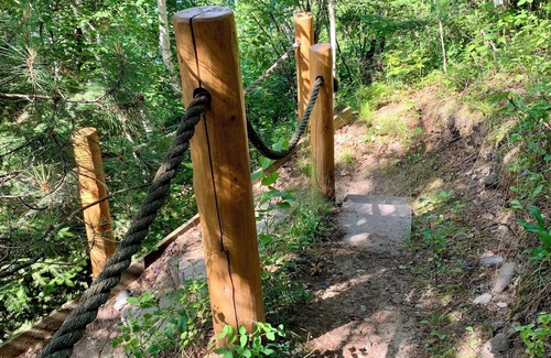 Walk down the path and down the wooden steps just off the patio to the cabins own dock. A great access to the wonders of Woman Lake for fishing, swimming, boating and water activities.