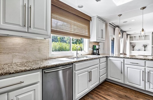 Beautiful views abound in this stylish 4 Bedroom 3 bathroom home located on Joe's Creek in the heart of Dallas. Central to all the attractions Dallas has to offer, this gorgeous home will offer a luxury stay and convenient location. The sparkling pool overlooks a sunken garden that backs up on to the creek.