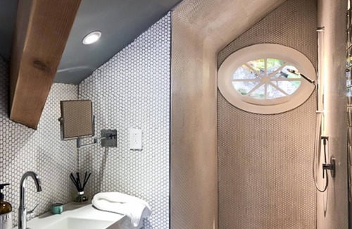 Bathroom 3 - 3-piece with stand-alone shower, washer, dryer and farmer sink