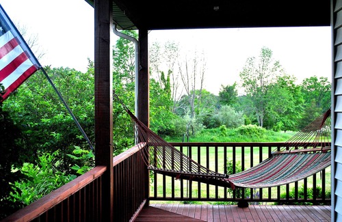 The house has a lovely wraparound porch with various seating areas, a hammock, a dining table and fascinating views of the mountains and country landscape. My neighbors are a fair distance away. You will feel like you are on your own private resort in the back areas of the house. There are many beautifully landscaped areas to relax in and fenced backyard with the 20'x40' swimming pool, a 5-person hot tub and a fire pit. At the end of the private driveway there is an informal basketball court with in-ground hoop. There are also many games in the house for your enjoyment! Please bring your own firewood (available in town).