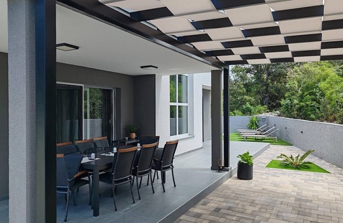 The modern villa welcomes you in the immediate vicinity of the sea in the small town of Bilice and offers you everything you need for a successful family vacation. Make yourself at home in the spacious and attractively decorated rooms and enjoy the time together with your loved ones.