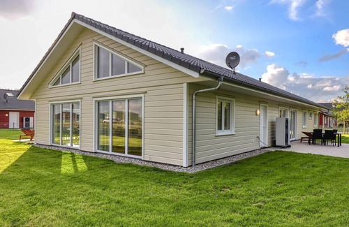 Welcome to this family holiday home, which awaits you just behind the dyke in Dagebüll. Just a short walk from the bathing dyke and ferry port, your spacious wooden house will entice you with its family-friendly furnishings and equipment. There is room for two families to dine together at the elegant dining table. Cooking together is possible in the kitchen, which is designed in the same style.