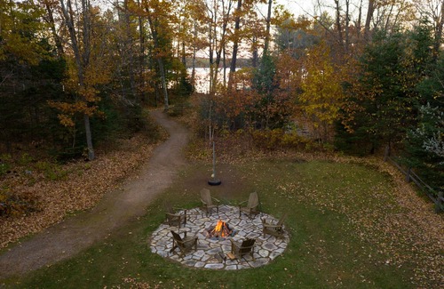 The outside space-Our tree lined driveway welcomes you to the northwoods and perfectly sets the scene for a relaxing time. The open lakeside yard is perfect for yard games and enjoying the sun. The paved fire pit area is the perfect space to enjoy an evening fire. Fish right from the dock on this NO PUBLIC access lake. Lots of pan fish, northern and musky to be caught.