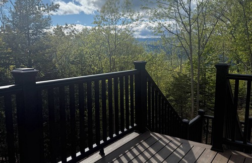 This brand new mountainside home on the side of Middle Mountain has 2 bedrooms (sleeps 6) and 2.5 baths (town ordinance 2 bedroom). It is tucked away on a quiet and peaceful side street. If you enjoy the outdoors, this home is close to local ski resorts and various hiking trails. In the summertime, enjoy the cool refreshing waters of Jackson Falls, which is a 3 minute drive away. Storyland is a quick 10 minute drive. This home boasts cathedral ceilings and a beautiful wood-burning fireplace you can cozy up to during the winter months. There is an entertainment room in the lower level with a large screen TV so families can spread out during their stay. The kitchen is fully stocked with all the amenities a family would need should they choose to dine in. The large outside deck offers a table with seating for six people and a gas grill. Pack and play is available at the house.