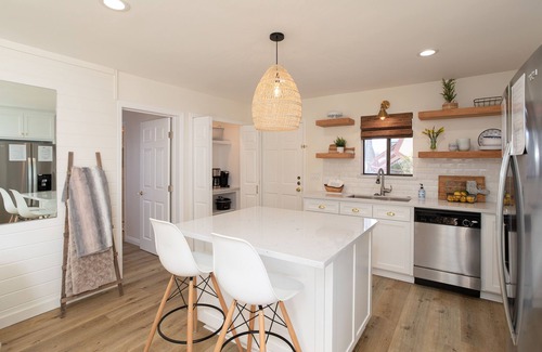 This beautifully remodeled condo has adeck situated right over the beach and overlooks the tidepools. With views from the Cayucos pier all the way to Morro Bay and Morro Rock, this is the perfect, relaxing spot to enjoy the sunset and watch the surfers catch some waves. Everything in the unit is brand new - from the floors and appliances to the furnishings and linens. This unit also offers an electric fireplace, flat screen TV, Wi-Fi, and its own stackable washer and dryer, which can be rare in these condos. This unit is on the ground floor and requires no stairs! Larger, additional deck can be used and is shared with the neighboring unit. Additional larger laundry facilities are available in the coin-operated laundry room onsite. SMALL PET (30 lbs or less) ONLY. Parking for one vehicle only onsite; additional parking is on the street only.