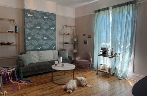 Gorgeous renovated historic 2-bedroom apartment in Kalamazoo is located in West Main HIll. Gorgeous renovated historic 2-bedroom apartment in Kalamazoo provides accommodation, featuring Air Conditioner, Pet Friendly, Bedding/Linens, among other amenities. This Apartment features Air Conditioner, Pet Friendly, Bedding/Linens, to make your stay a comfortable one.