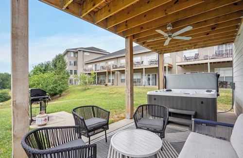 Nestled just half a mile from the renowned Highway 76 Country Music Boulevard, this luxurious five-bedroom lodge offers a captivating retreat and has a newly installed Hot Tub! The expansive great room boasts a fully equipped kitchen, a spacious dining area, and a comfortable sitting area equipped with a 75" 4K Smart TV. Step out onto one of the two outdoor balconies or the covered patio to soak in the breathtaking views of our award-winning golf course. Each of the five bedrooms offers a haven of comfort, with four featuring their own en suite bathroom, while the two upstairs bedrooms share access to an additional hallway bathroom. For added convenience, a full-size laundry room is available for longer stays. Outdoor leisure abounds with regulation-size backyard games, BBQ grills, discounted rounds of golf, and more. Additionally, guests can stay connected with complimentary wireless internet access.
