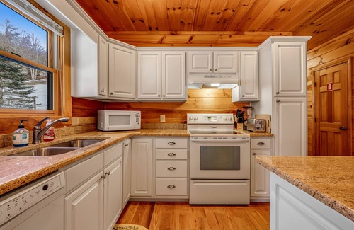 Boasting a fantastic mountain location, this two-level home is the picture of tranquility and comfort, with two well-appointed bedrooms and lots of space and privacy for everyone to enjoy during downtime. When you're not out on a fun hot-weather hike, summer guests can kick their feet up on the home's private furnished deck with a refreshing beverage and the company of old friends. Inside, an open concept, all-wood interior, and high ceilings combine to bring a warm and welcoming ambiance to the space. The living room is dressed in lots of fun ski decor and comfy furniture, all crowned by a gorgeous stacked-stone gas fireplace with a mantle that climbs all the way to the ceiling, perfect for intrepid skiers returning home after a day on the slopes. The full kitchen is open and spacious, equipped with a center prep island and all the appliances, counter space, and cabinet storage the group chef will need to prepare world-class meals right from home. Serve your dinner guests at the handsome dining table with seating for four, then clear everything away for some fun board games while the dishwasher quietly knocks out all the cleanup. You'll find the laundry area right off the kitchen and a terrific office area upstairs, an ideal space for remote workers and students, and the free WiFi will make it easy to perform a bit of online research for those last-minute tasks. Reward your hard work with an evening around the outdoor firepit, toasting s'mores and finding your favorite star constellations overhead!