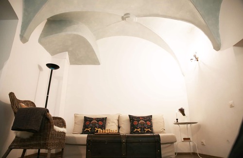 Gothic Apartment is a cozy apartment, with a rustic design. It has a king size bed in the bedroom and extensible couch in the living room.
