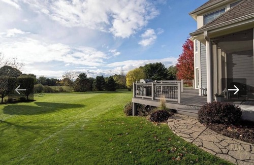 15 min from Erin Hills Golf Club and Lac La Belle semi-private country club. 20 minutes from Downtown Milwaukee. Southeast Wisconsin is climbing on the list of golf destinations. Come and enjoy amazing golf while staying in a grand and spacious executive home in a prestigious area. 5 minutes from premiere restaurants and supper clubs. This home is located in Lake Country, southeastern Wisconsin’s most beautiful and pristine areas with lake access 5 minutes away and beautiful parks and park trails nearby. Kettle Moraine, Bugline and Lapham Peak to name a few. Many spaces to enjoy in this home such as multiple decks, a screened in porch, a bar and rec room with a game of bags, walking trails, and an exercise/ weight room.
