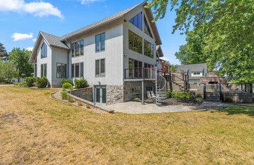 Over 6,000 SF of indoor living space along with 50 ft of lake frontage. You can relax in the walk-out basement with features including an 8-person theater room, sauna, and full wet bar with lake views. But the real center piece of the house is the 1,000 SF great room with cozy fireplace. The massive windows beautifully illuminate the 25-foot high timber framed ceiling and provide the perfect location to gather with family and friend or relax in the indoor hot tub.