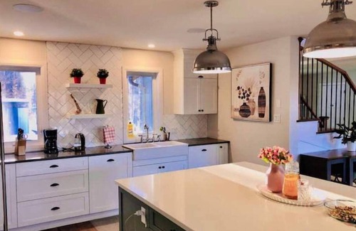 Oversized fully equipped kitchen with Three types of coffee machines are available: A De'Longhi Magnifica Evo with LatteCrema System Automatic Espresso Coffee Machine and A KEURIG K-Supreme Plus® Single Serve Coffee maker and a Sunbeam 12-Cup Drip Programmablre Coffee make.