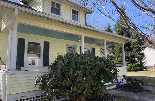 Welcome! Great location in the Housatonic village of Great Barrington with big yard, walkable streets and an excellent front porch for social time and relaxing. Your dog is welcome if well behaved and crated while you are out and about.