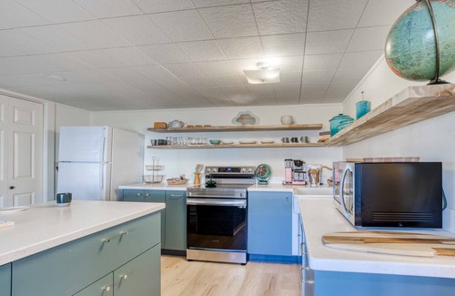 You’ll find a sweet spot to enjoy Seaside at Saltbox Cottage, a classic single-level located 4 blocks from the beach, and only a 10 min walk to town. Located near the promenade in the desirable south end of town, just two blocks from the golf course, market, wood-fired pizza, Billy Mac's, and Osprey Cafe, you've got everything right at hand, without the crowds. This 1920 cottage with seahorse shutters has a large deck for soaking in the sun or warming up over the grill on a blustery day. A plush sofa ringed by windows in the living room faces a large TV. You can plan to eat in, thanks to a table and island in the roomy kitchen--though it’s an easy walk to many of Seaside’s restaurants! One queen bedroom and one single bedroom with desk provide comfortable retreats to rest up after your beach adventures or catch up on work in the quiet. Once you’ve explored Seaside, it’s an easy day trip to Astoria’s fun downtown, the Columbia River Maritime Museum and a climb up the Astoria column. Enjoy the charming, retro vibe of this historic cottage and relish its prime location for fun in Seaside!