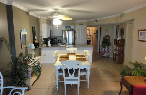 This Gulf front unit provides magnificent views of the Gulf and beach from inside the unit or from the large deck. Great for that morning coffee, an afternoon siesta or the beautiful sunset. The master bedroom with king size bed, and on suite bathroom, opens directly to Gulf front deck. The second bedroom has a Queen size bed and a twin bed for added convenience. The tastefully decorated living room also opens directly to the Gulf front deck. The living room sleeper sofa provides additional accommodations if needed. The kitchen has been recently remodel. All new cabinets with 'Corian' counters and top of the line stainless steel appliances. The large dinning table accommodates six (6) people. The unit also includes its own washer and dryer and a full second bathroom. A flat screen TV and DVR are in the living room and a flat screen TV is also in the master bedroom. The master bath has also been recently remodeled. The second bedroom also has a TV and DVR. High Speed Internet service is available throughout the unit. Outside you will be able to enjoy the incredible amenities that the resort offers such as the beautiful beach, 7 outdoor pools including a children's pool, hot tub, two indoor pools and a complete fitness center. There are tennis courts and putting greens also on the grounds and you can walk to the championship golf course of Kiwa Dunes which is next door. If you enjoy outdoor cooking there are many grills provided on the grounds. We hope you enjoy our beach condo as much as we and our family do.