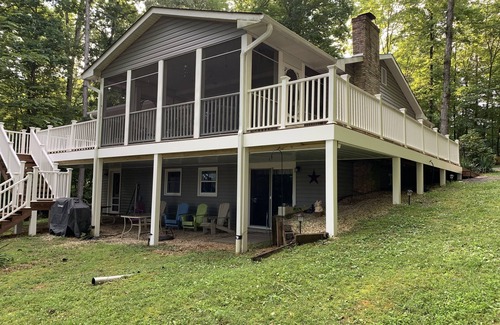 A Lakeside Dream is nestled on the shore of one of the most popular lakes in Virginia, and near Mariner's Landing Golf Course and the beautiful Smith Mountain Lake State Park. This lovely 3 bedroom/2.5-bath cottage can be your vacation 'home away from home'. Come and enjoy relaxing on the party deck looking at the picturesque mountainside. This area is beautiful in the spring, and still lovelier in the fall. It's the perfect place for couples to get away, or to bring the kids for fun in sun at the cool sandy beach area with playground -- located right on the property. A Lakeside Dream is just minutes from the lakes summertime favorites including movies, an arcade, and miniature golf! Spend your days fishing, swimming, or skiing with your own boat in the open waters of the lake. Relax in the plush beds and whimsical decor. Guests will enjoy comfortable beds in all our rooms. Plus extra sleeping areas on the lower level.