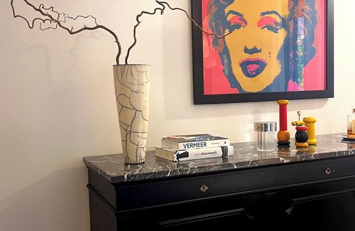 This apartment is a true design refuge, where natural light from the large windows enhances the