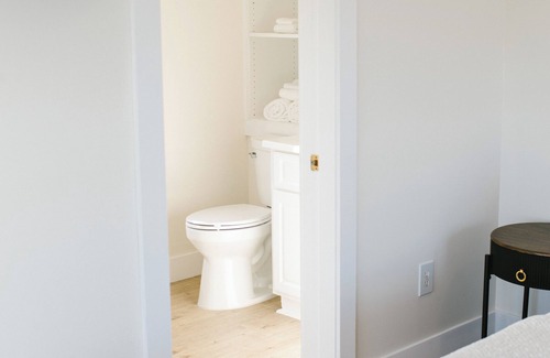 Discover one of Boothbay Harbor's best-kept secrets in Room 7 at the Greenleaf Inn. Perched at the top of the inn, this private and peaceful king room offers unparalleled views of the harbor and open ocean, with direct access to a spacious rooftop deck right outside your sliding glass door.