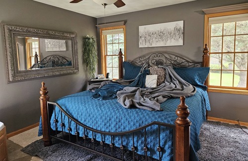 Rent this SHARP and UNIQUE 3 bedroom, 2 full bathroom home on a three quarter acre lot in the convenient, yet private town of Greenville, WI. VERY PRIVATE and wooded property; yet minutes from the Fox River Mall and surrounding Appleton restaurants. We are about 30 minutes from the Packer stadium if you have tickets for a home game. Home offers an open concept floor plan, jetted tub in master bedroom, adjustable king size bed, soft water, as well as completely finished basement with workout room and entertainment area for hosting family and friends. Home offers Smart TV's in Master bedroom and 3rd bedroom, living room, and two nice-sized TV's in basement for hosting those Packer parties and other sports events. We also have 2 queen size inflatable beds for extra sleep capacity, if needed. However, please let us know if you plan to use so we take them out of storage. Completely furnished kitchen including crock pots and coffee keurig. We have a small pond in back of home, with nicely landscaped and wooded backyard for those awesome cookouts with family and friends. We have a Traeger grill and 2 Oklahoma Joe smokers. Home offers an underground sprinkler system, outdoor lighting, professional landscaping and outdoor speakers in front and back of home. Three stall garage with mounted TV in garage as well. There is also a large driveway for ample parking. Cars can also park on the streets in Greenville. Home is conveniently located; just 30 minutes from Green Bay or Oshkosh. EXCEPTIONAL HOME FOR EAA !!! Check in time is 4pm and check out at 11am on day of departure. However, if the home is ready earlier than 4:00 pm, we are more than willing to let you check in early. Please reach out with any questions concerning our home via text or phone at 9203783101.