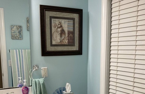 Fully equipped kitchen, 3 bedrooms (main level), living room/game room upstairs with pullout single bed (private, above garage), 2 full bathrooms (one ensuite) with large soaking tub. Large driveway for cars/boat parking, two-car garage available for use, deck and enclosed screened-in porch, basketball hoop for entertainment. Fenced in yard for pets/play.
