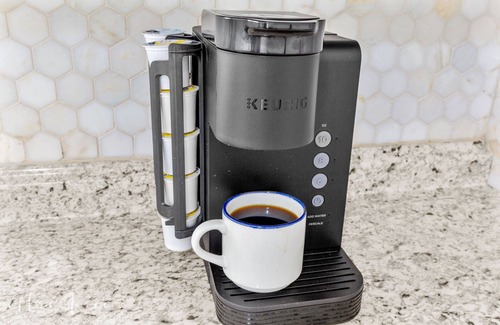 ✔ Keurig Coffee maker with K-cups, creamer, and sugar