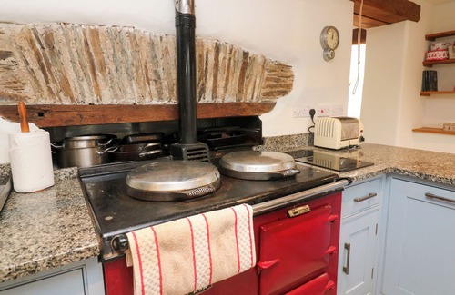Amenities: Electric underfloor heating. Electric oven and hob, microwave, fridge/freezer, washing machine, tumble dryer, dishwasher, coffee maker. Decorative AGA. WiFi. Fuel, power, and starter pack for woodburning stove inc. in rent. Bed linen and towels inc. in rent. Ample off-road parking. Wraparound garden with lawn, patio, furniture, and pizza oven. Two well-behaved pets welcome. Sorry, no smoking. Shop 0.5 miles, pub 0.1 miles. Note: The garden has lots of multi-levels and uneven surfaces and is not suitable for children under 8 years old. Note: The garden is not enclosed. Please note: This property does not accept week long check ins on a Sunday.