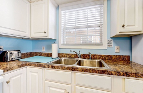 Step outside each morning to sip your coffee on the patio, a covered space with cushioned chairs and a sunshade to ensure your comfort all day. Back inside, every essential is provided, from an open kitchen and dining area to TVs in the living room and bedrooms. Enjoy central air conditioning, complimentary WiFi, and two full bathrooms to pair with the two bedrooms.