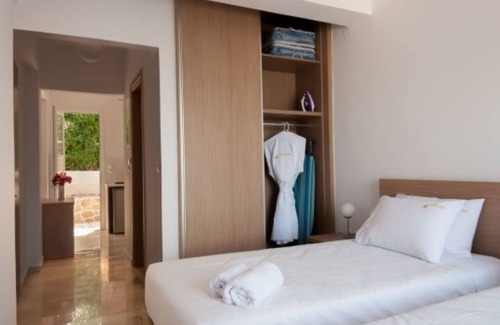Our ground floor studio includes two twin beds and a bathroom equipped with a shower cabin and complimentary toiletries. Guests also have access to a fully equipped kitchen. Each space also includes air-conditioning, a flat-screen TV. Explore the beach grotto, visit the local restaurants and taverns, and take a refreshing dip at our private beach.