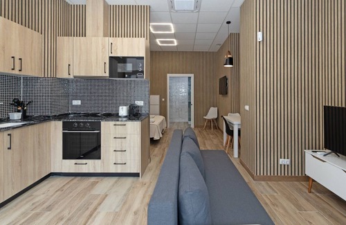This 1-bedroom, 20 m² ground-floor apartment is ideal for couples or small families and is fully adapted for guests with disabilities. Inside, you’ll find an open-plan layout with a sofa bed, a smart TV, a dining area, and a kitchen equipped with basic utensils, a washing machine, and ironing facilities. The bedroom features a double bed with clean sheets, and the bathroom comes with towels and toiletries.