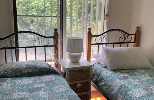Bedroom 1: 2 single beds (hanging rack for clothes storage) Bedroom 2: Double bed with wardrobe 3: 2 Single beds with wardrobe.