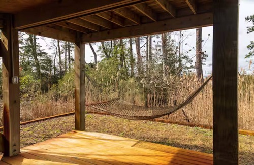 Blackbeard's Treasure might not be here, but you will make treasured memories! The WIE Village is unique in many ways...made from mostly local OBX re-purposed materials, combined with charm, accommodate 1 to 3 people. Two pods & main house borders 1600 acres of nature preserve within 2 mi of the beach. To accommodate larger parties, reserve Pod Messi &/or Main House in addition to Pod Zeus. These listings can be found under my profile!