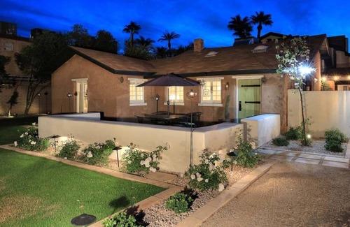 This unique guesthouse in central phoenix, is just minutes from the airport with easy freeway access. Within a mile, are some 30 or more terrific dining and drinking establishments!