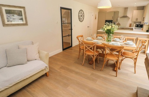 Amenities: Electric air source heat pump. Neff electric oven, induction hob, microwave, fridge/freezer, washing machine, dishwasher, tumble dryer, kettle, toaster, coffee maker. 3 x Smart TV's, air hockey table, selection of games, WiFi. Fuel and power inc. in rent. Bed linen and towels inc. in rent. Highchair and travel cot available upon request. Off-road parking for 3 cars. Enclosed rear garden with patio, lawn, furniture and 6 person hot tub. Three well-behaved pets welcome. Sorry, no smoking. Shop and pub 0.1 miles. Note: Guests can use facilities on the holiday park opposite, but they are chargeable, including a gym, swimming pool, sauna, jacuzzi and steam room. Note: There is a Good Housekeeping Bond of £350