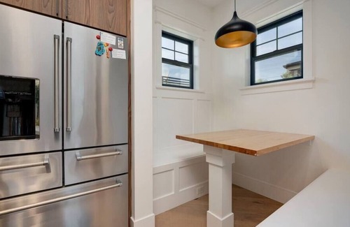 Discover the heart of this uniquely crafted home! From artistically intertwined flooring to elegant crown molding, every inch exudes personalized style and family comfort. Unwind with a glass of wine in the master bath, featuring its own mini-fridge and bar. The gently lit bathrooms with motion-sensor lights add a touch of luxury, ensuring comfort even at night. Embrace cozy evenings stargazing with the kids. This home easily accommodates up to 9 guests, inviting you to create lasting memories!