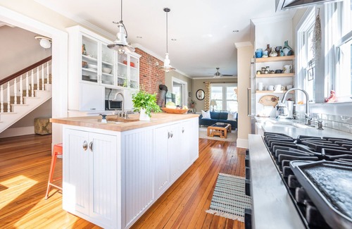 Heated pool, gourmet kitchen and a short walk to town.