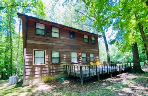 Secluded home nestled in trees. This home offers 3 bedrooms, 2 bathrooms with a full kitchen. Living room is separate from the kitchen offering privacy. There are board games, lawn chairs, and a fire pit available to use for a relaxing weekend. Back deck overlooks the woods and has a big yard for kids to play in. There are 16 acres available on the property to explore. Very private but only a few miles to downtown Mtn. View, Blanchard Springs and the famous White River.