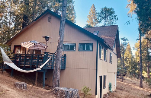 Welcome to Happy Lake Chalet! This happy retreat is ideally located for exploring the Sierras. Take a short stroll to a private lake or a short drive to Bear Valley Ski Resort, the Stanislaus River, the Calaveras wine trail, Big Trees, Utica Reservoir, Murphys, or Columbia State Park. With 3 bedrooms, a loft, and 2 full bathrooms, you'll have plenty of room to unwind and reconnect with loved ones. Make meals in the open kitchen, relax around the woodstove, or dine on the deck in the fresh mountain air. We welcome families, kids and pets.