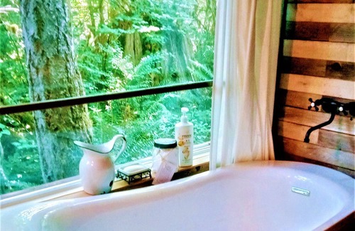 An amazing separate bathroom awaits you at the cottage. Take in the peaceful forest view while relaxing in the soaking tub, soothing your mind, body & soul. If a compost toilet in the guest bathroom grosses you out, please don't make a reservation here.